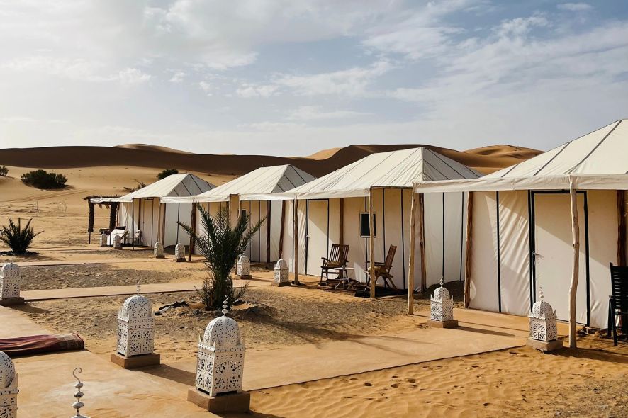 • Overnight stay in a Sahara desert camp with traditional dinner and music